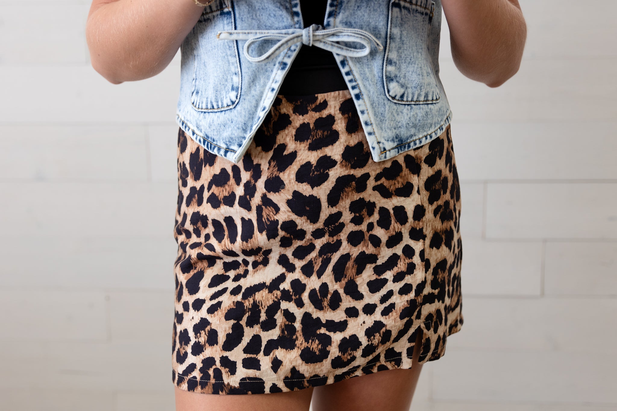 ee:some Leopard Printed Mini Skirt-Brown Model: 5'4" wearing size medium. ee:some will be shipped from: The Burlap Buffalo 224...