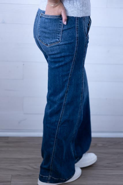 Paige MR Release Hem Wide Jeans These contemporary Judy Blue wide-leg jeans feature a flattering high-rise silhouette crafted from...