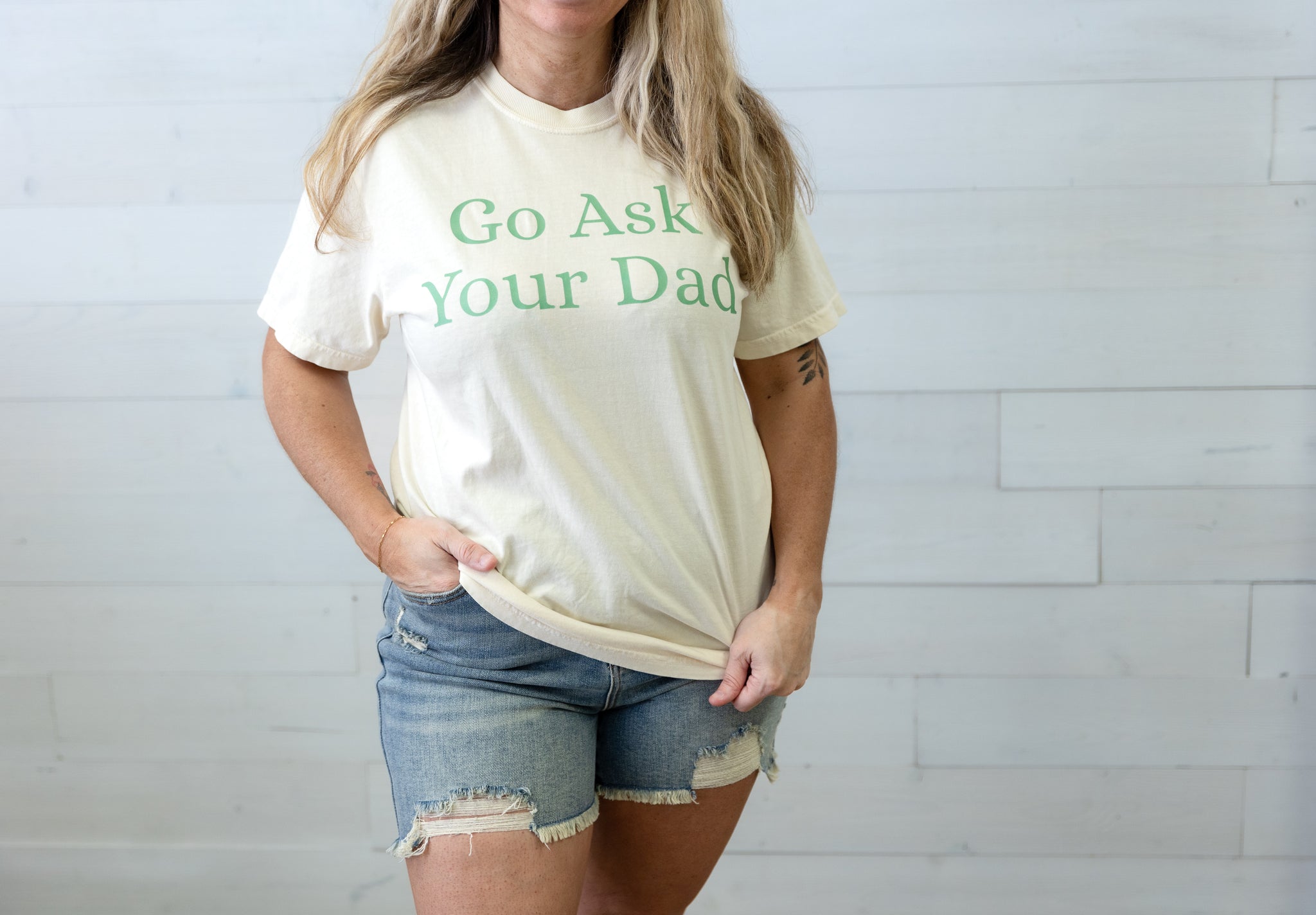 Go Ask Your Dad Graphic Tee Ivory Our favorite line to tell our kids! "Go ask your dad!" This...