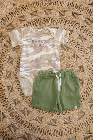 Mamas Little Dude Onesie Camo Product will be shipped from: The Burlap Buffalo 224 West State Highway 152 Mustang,...