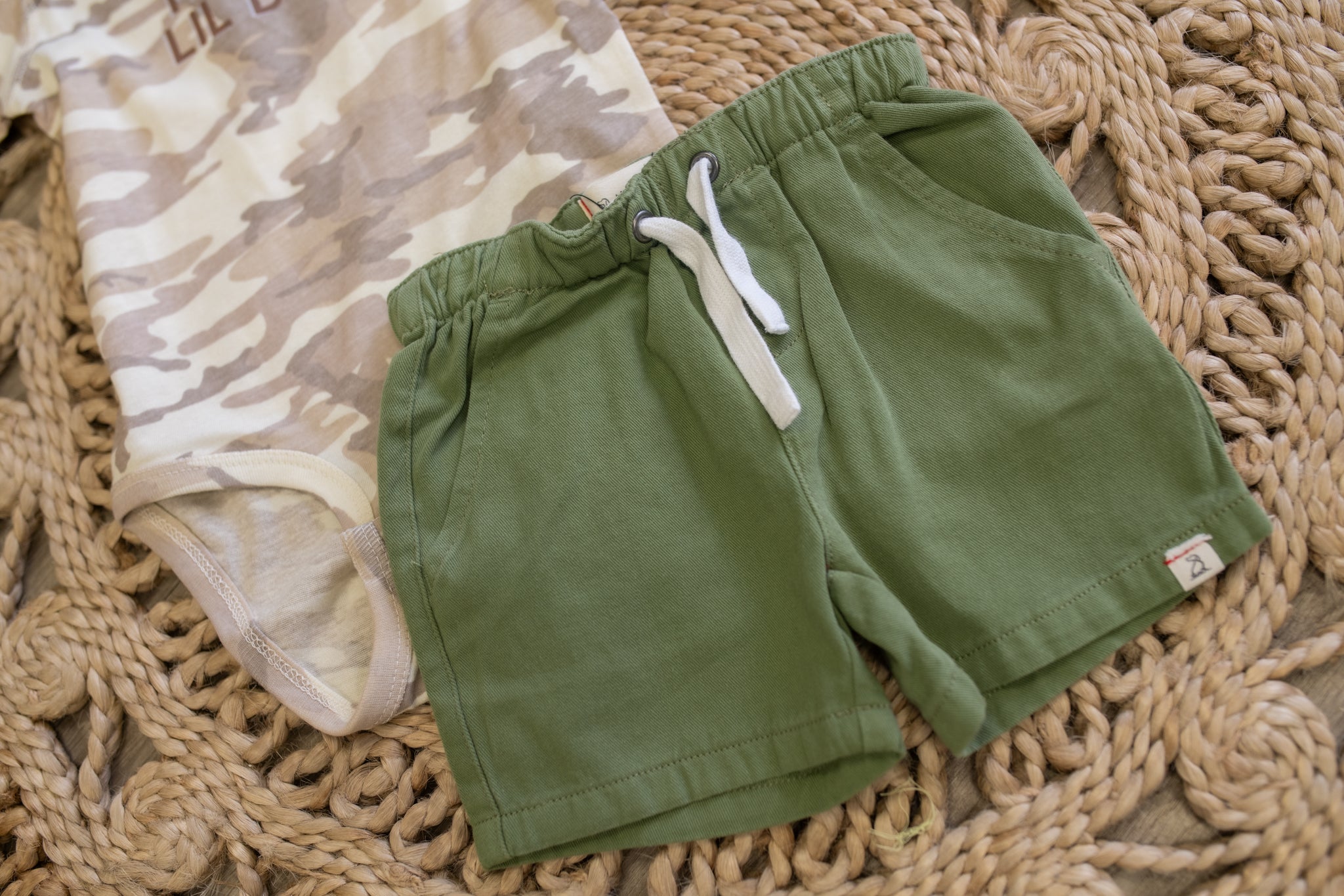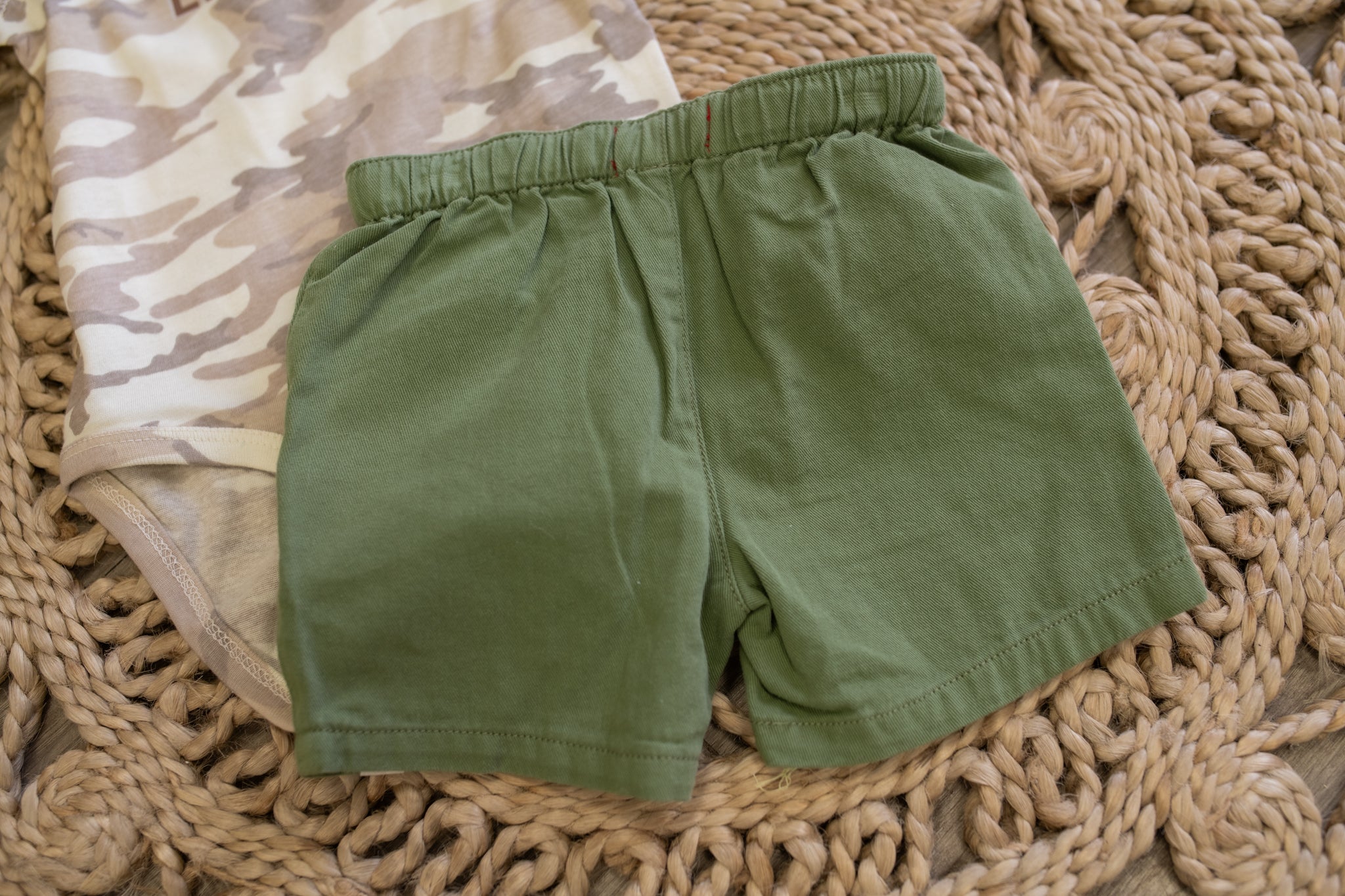 Hugo Khaki Shorts Add your littles favorite graphic tee or dress up shirt with these shorts to complete their...