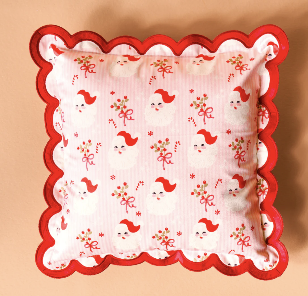 Scalloped Square Throw Pillow 18x18 Holly Jolly Santa Add a festive, cozy touch to your space with our holiday throw...