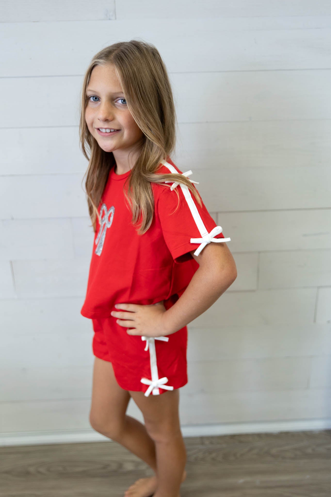 Red Top with Sequin Bow Sweet and sparkly, this Red Top with Sequin Bow is full of gameday flair! The...