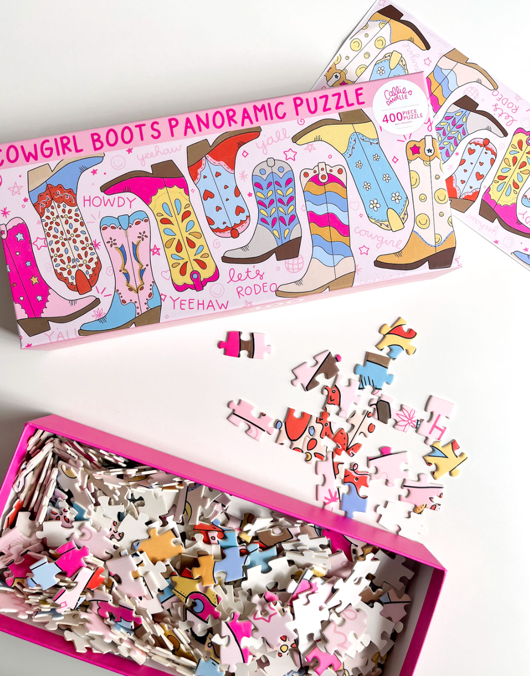 Panoramic Cowgirl Boots Puzzle Piece together a bit of southern charm with our Cowgirl Boots 400-Piece Panoramic Jigsaw Puzzle. Featuring...