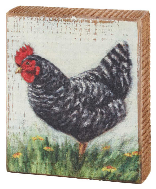 Block Sign Plymouth Rock Chicken A charming wooden block sign from our Farmhouse Collection displaying a hand painted design of a...