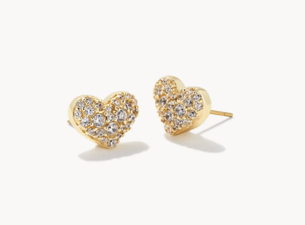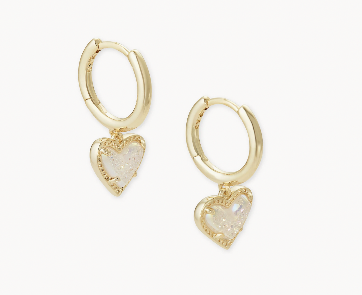 Ari Heart Huggie Ear Gold Pink Iridescent Glitter Hearts and huggies together—is there anything better? The Ari Heart Gold Huggie...