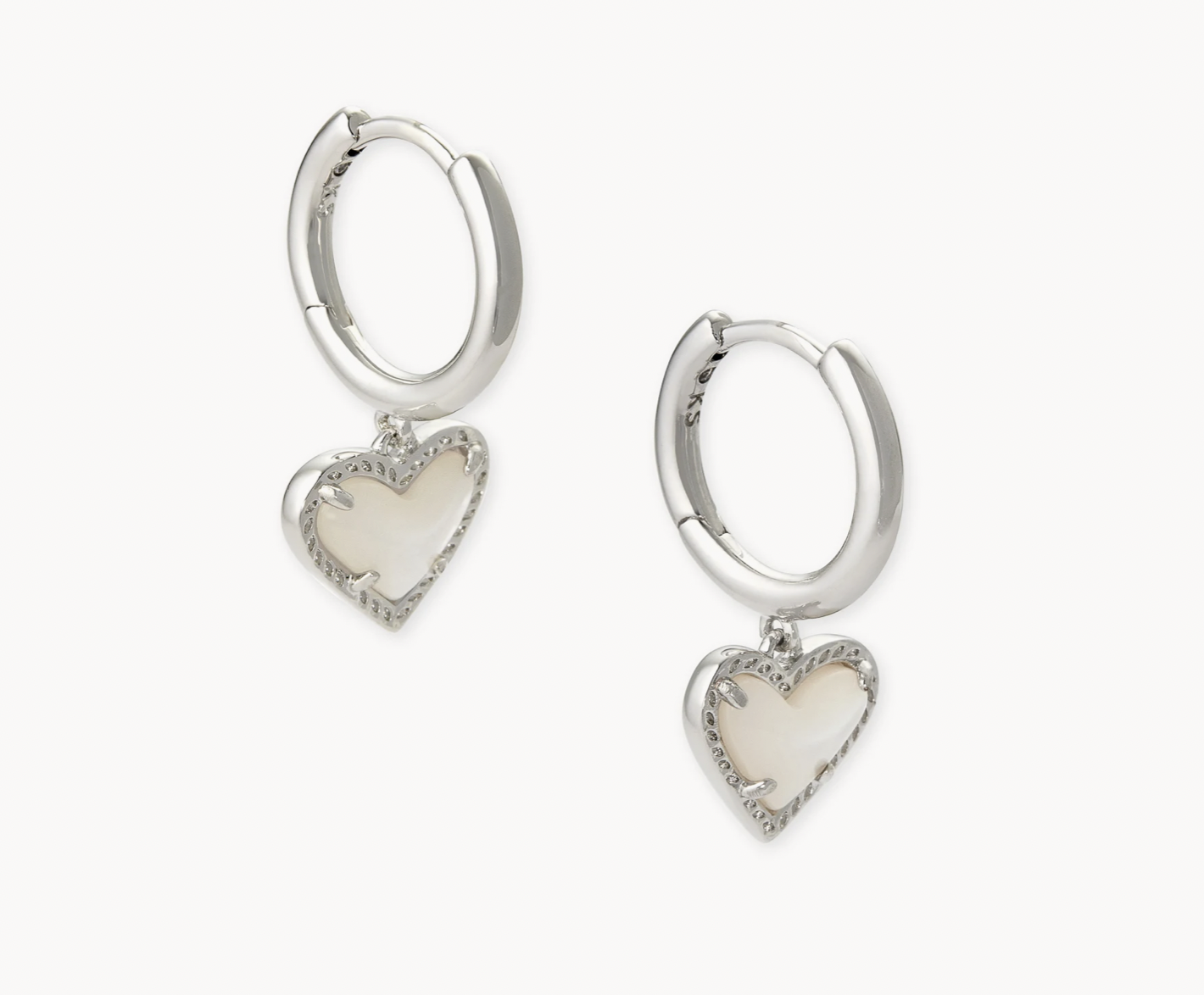 Ari Heart Huggie Ear Rhod Pink Iridscent Glitter Hearts and huggies together—is there anything better? The Ari Heart Silver Huggie...