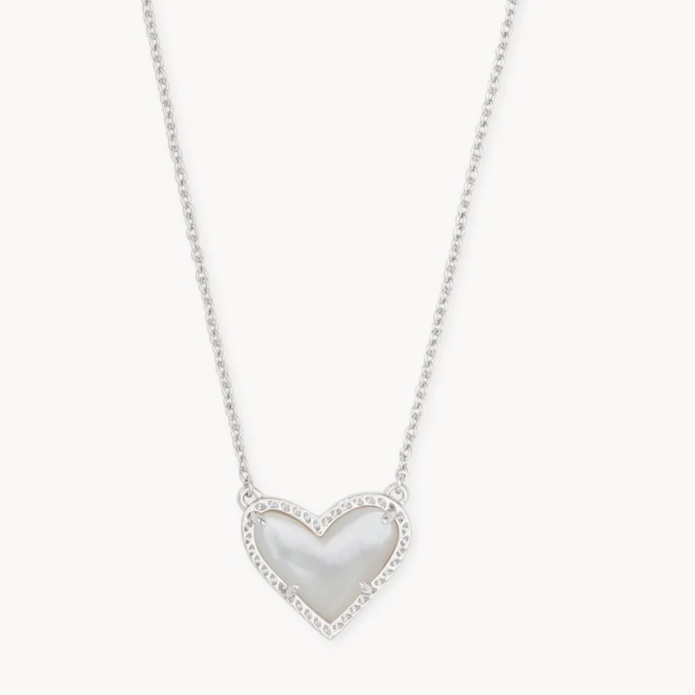 Ari Heart Short Pendant Nickel Rhod Bubblegum Pink Opal Feminine and classic with an asymmetrical design, the Ari Heart Silver...