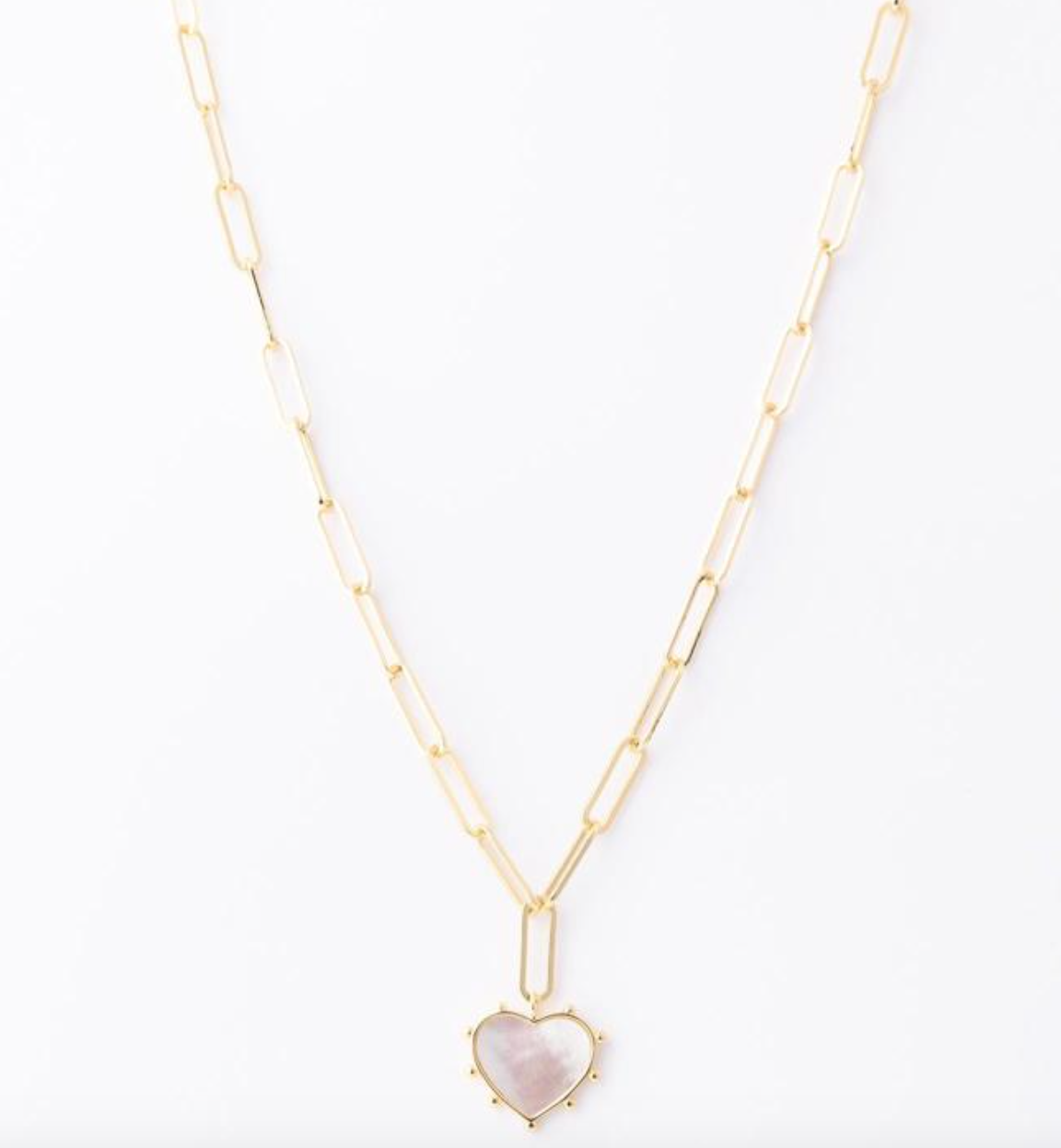 Natalia Necklace Gold Elevate your style with this elegant gold-tone necklace, featuring a modern paperclip chain and a charming heart-shaped...