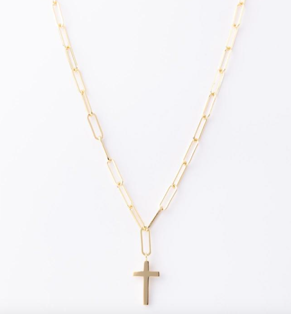 Mara Necklace Gold Elevate your everyday style with this timeless gold-tone necklace featuring a sleek cross pendant and modern paperclip...