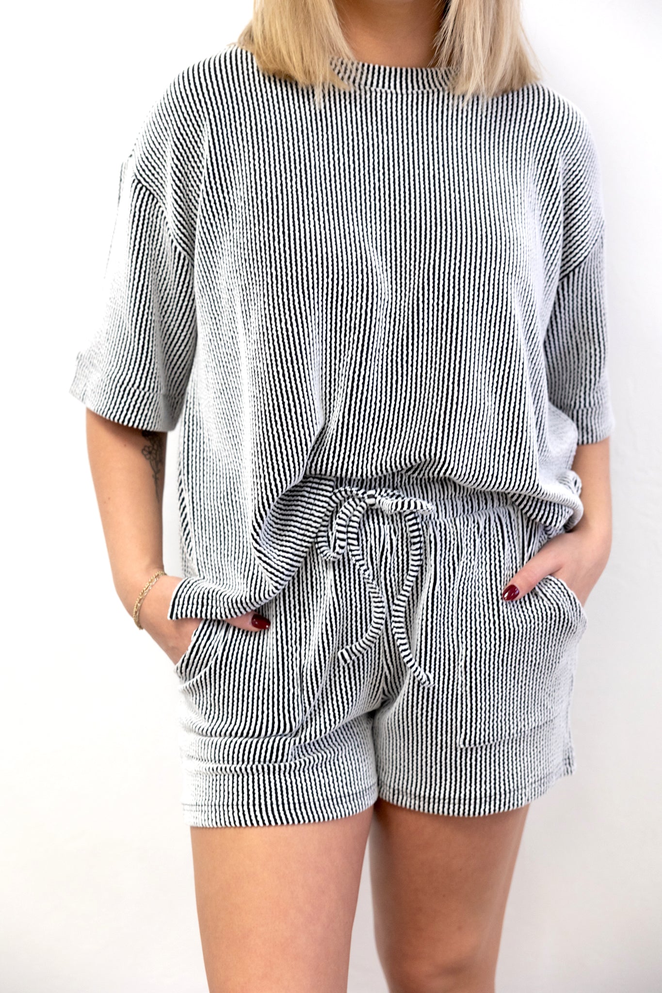 Striped SS Tee & Short Set Black/White Effortless, sporty, and always in style — the Striped SS Tee & Short...