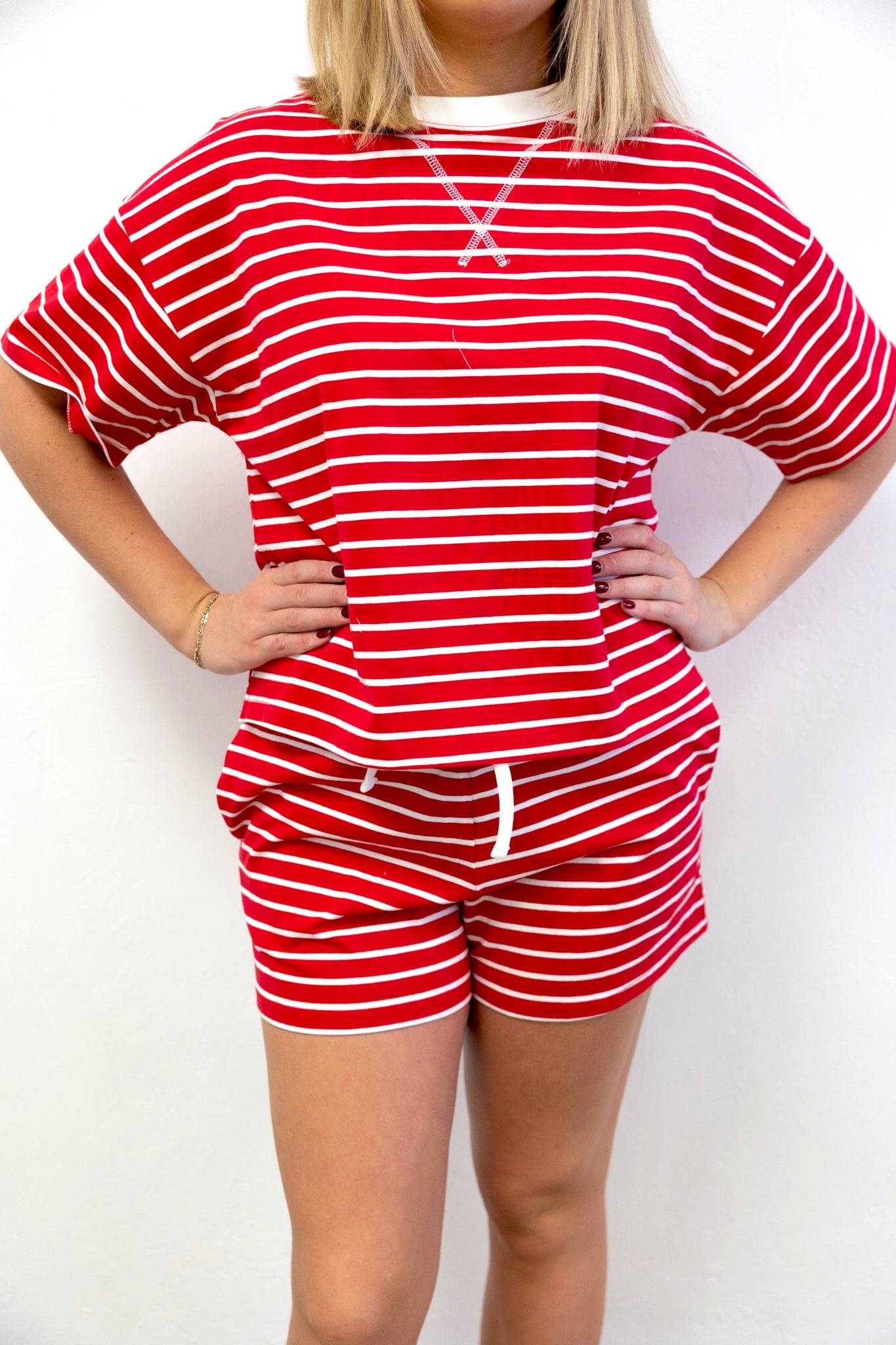Striped Round Neck Tee Short Set Red Stripe Stay comfy and cute all season long in our Striped Round Neck...