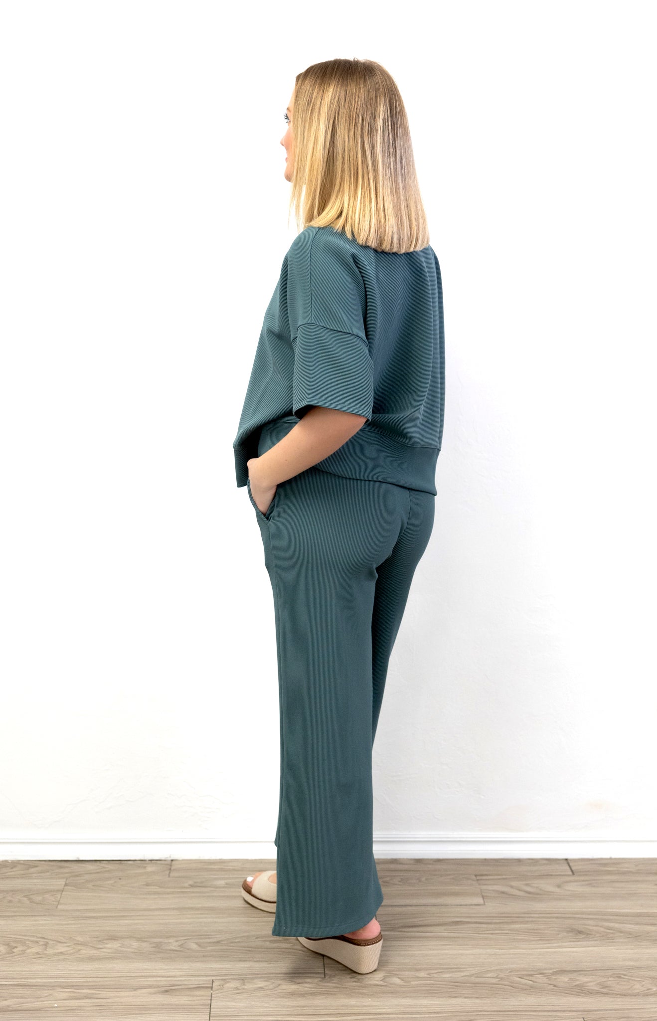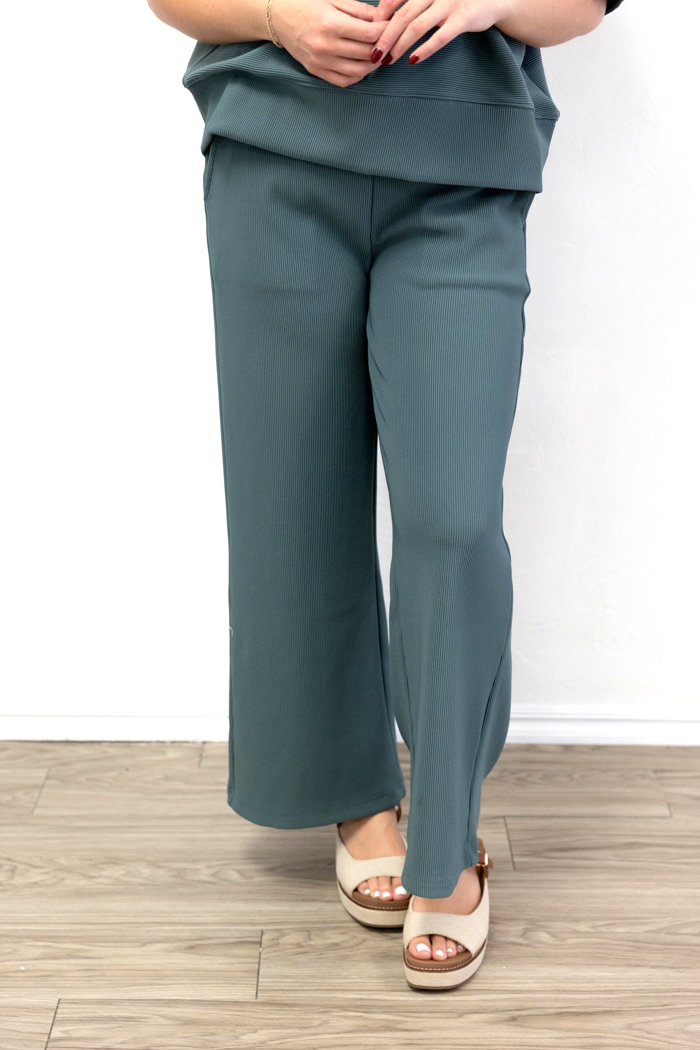 Ribbed Round Neck Tee & Pant Set Ash Jade The Ribbed Round Neck Tee & Pant Set in Ash Jade...