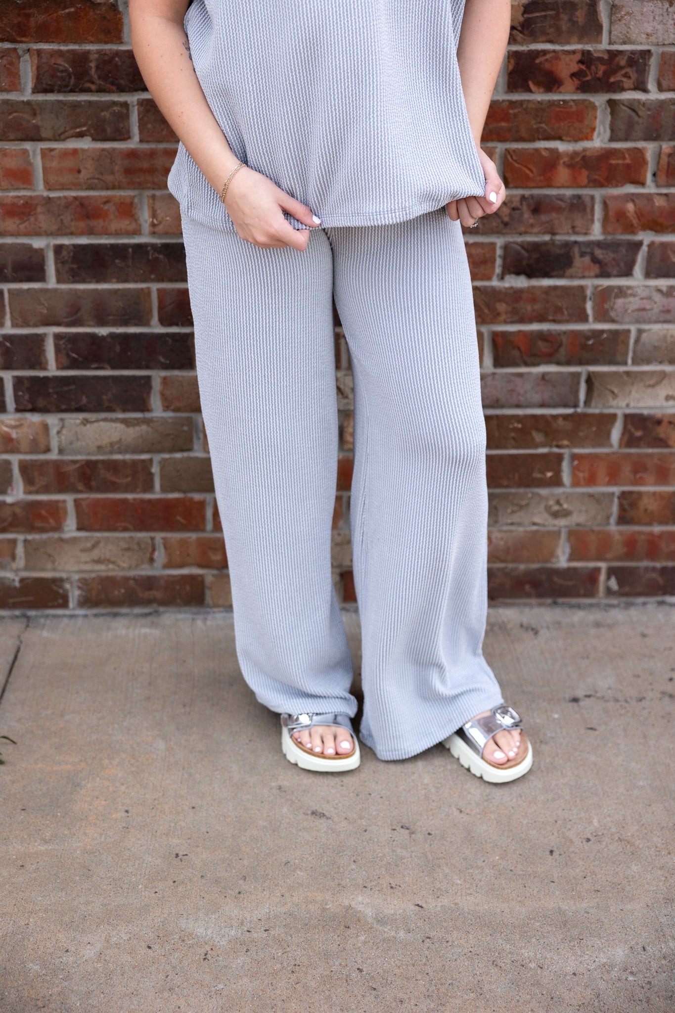 Raised Rib Short Sleeve Tee & Pants Set Sleet This set is the ultimate comfy-chic moment! A soft ribbed matching...