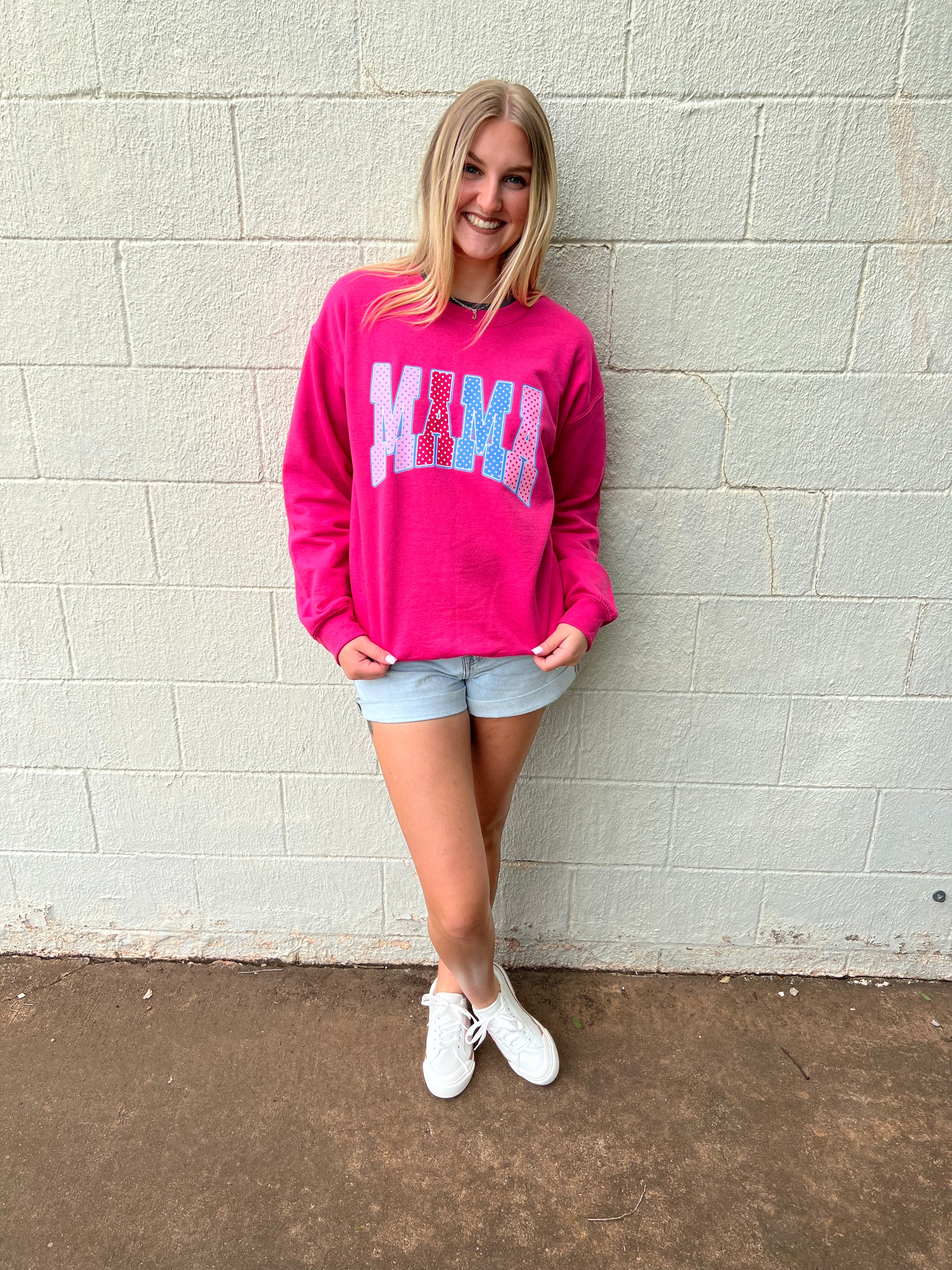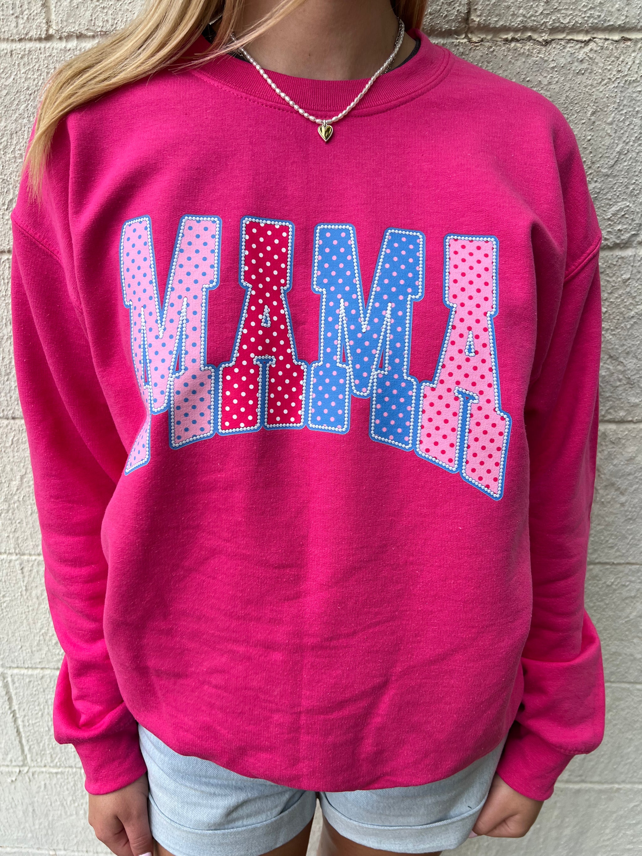 Mama Polka Dots Pink Sweatshirt A cozy essential with a playful heart, the Mama Polka Dots Pink Sweatshirt blends comfort...