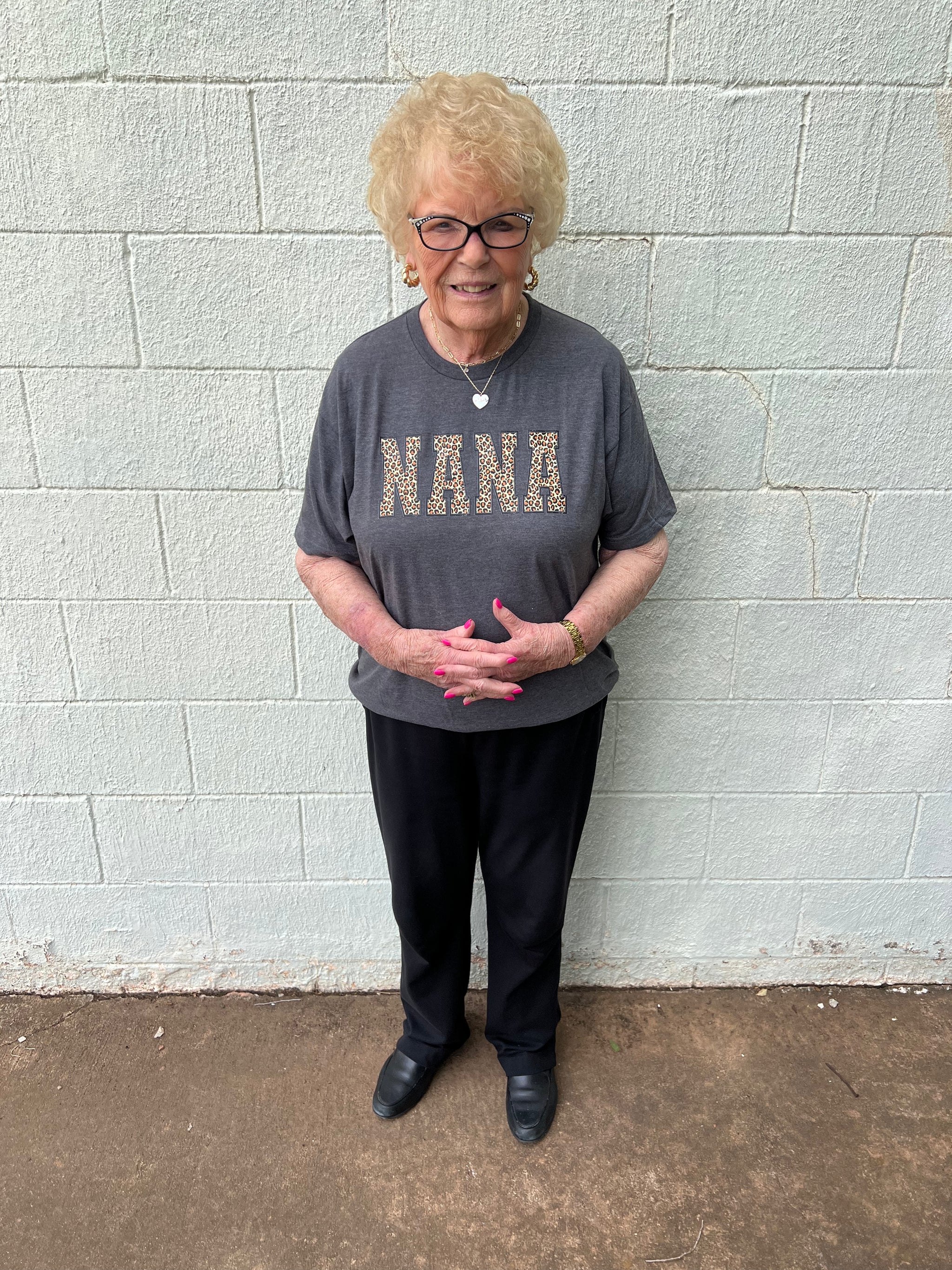 Nana Leopard Graphic Tee Charcoal This Nana graphic tee is the style! It is so cute. You can wear...