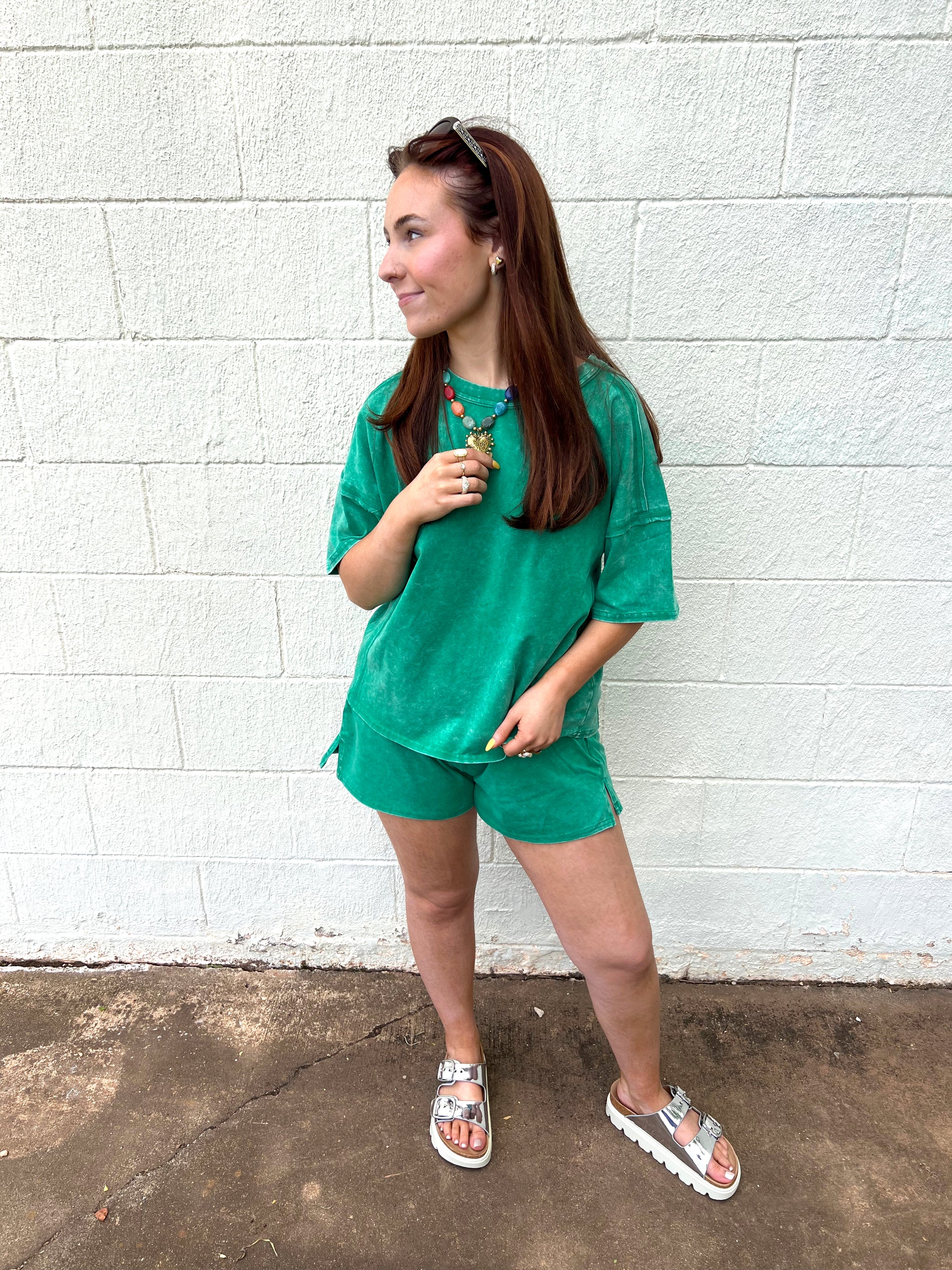 Acid Washed Short Sleeve Tee & Shorts Set Kelly Green Meet your new off-duty favorite! This effortlessly cool matching set...