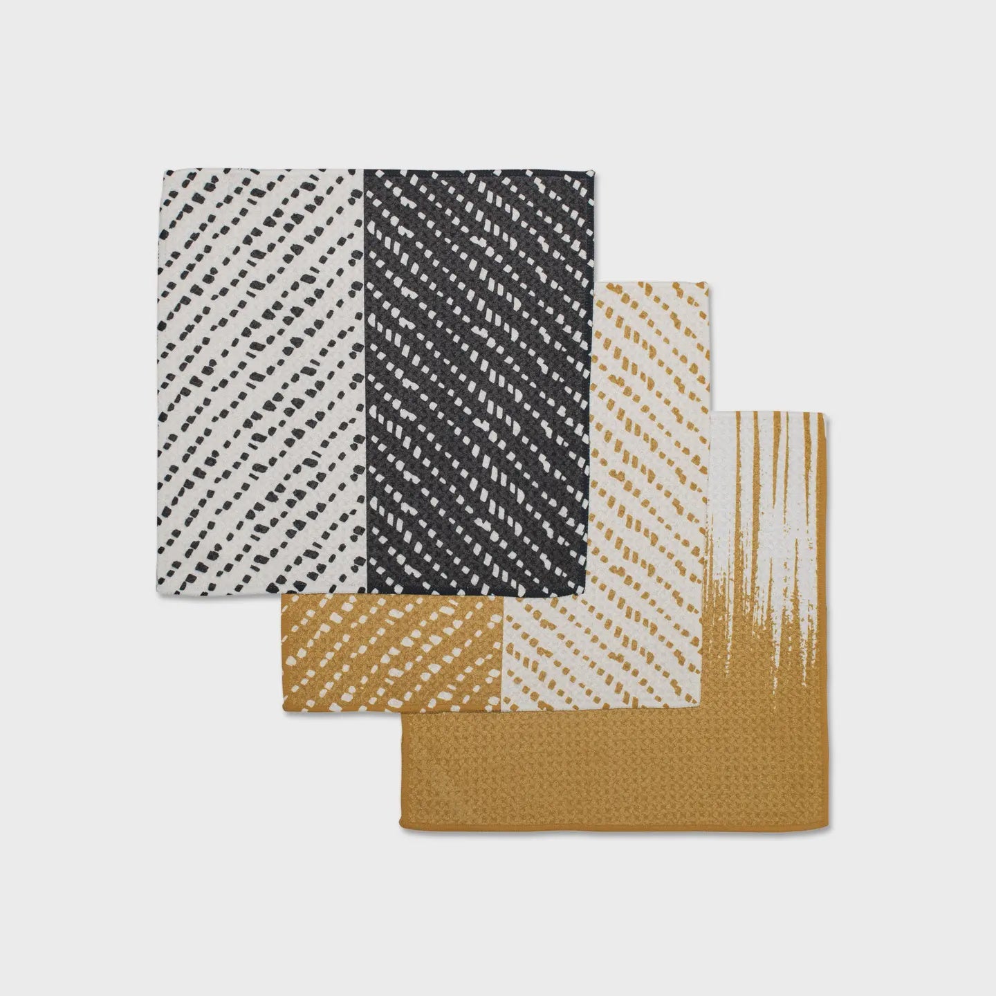 Geometry dishcloths provide super cleaning and next-level absorbency when drying dishes and surfaces! Dishcloth Set - 3 pack | 10" x 10" | Made from recycled polyester | Weight: 320 g | Single-sided print | Hang loop | Waffle weave construction | Quick-drying